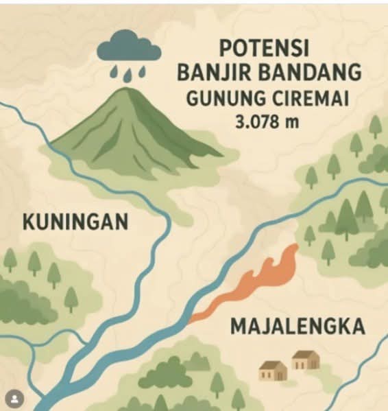 Pemerintah Kuningan dan Majalengka perlu memantau hujan ekstrem dan perubahan tata guna lahan di hulu Ciremai,jangan sampai banjir bandang Sumatra,Aceh dan Guci terjadi di Kuningan dan Majalengka.