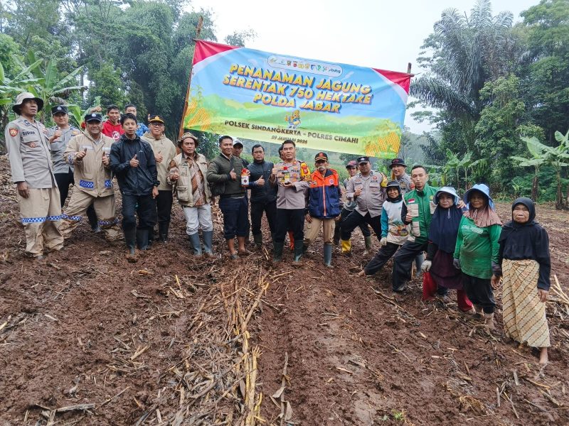 Bandung Barat, Kontroversinews | Polsek Sindangkerta, Polres Cimahi, Polda Jawa Barat melaksanakan kegiatan penanaman jagung serentak sebagai bagian dari program penanaman jagung seluas 750 hektare yang digagas Polda Jawa Barat.
