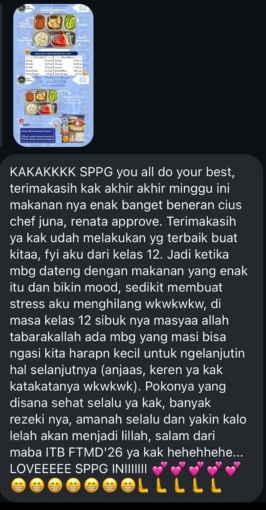 Pesan Ucapan Terimakasih dan Doa Pelajar SMAN Selacau Kepada Pekerja SPPG Selacau